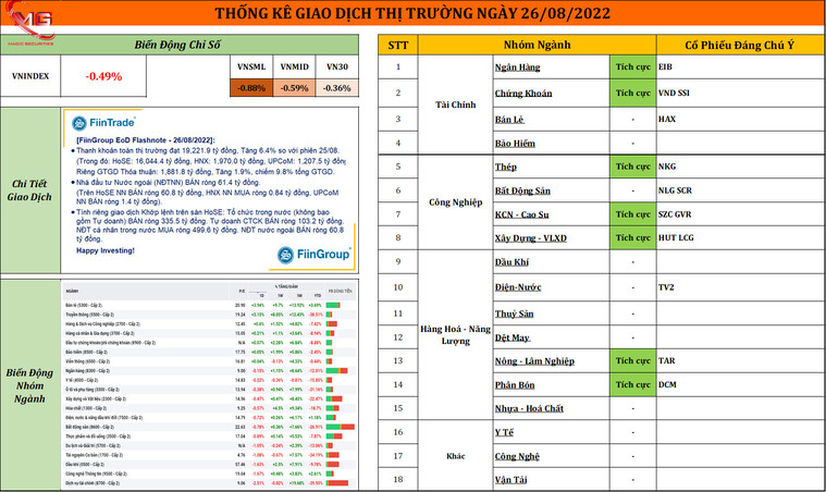 Nhận Định Thị Trường Phiên Giao Dịch 26/08 : " VNI Giảm Điểm Diện Rộng, Kịch Bản Trước Nghỉ Lễ ? "