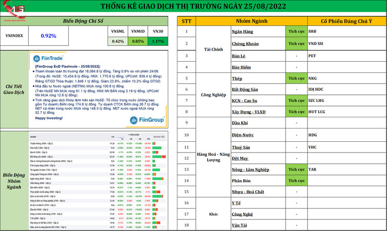 Nhận Định Thị Trường Phiên Giao Dịch 25/08 : " VNI Vượt Kháng Cự Quan Trọng, Thanh Khoản Tăng "