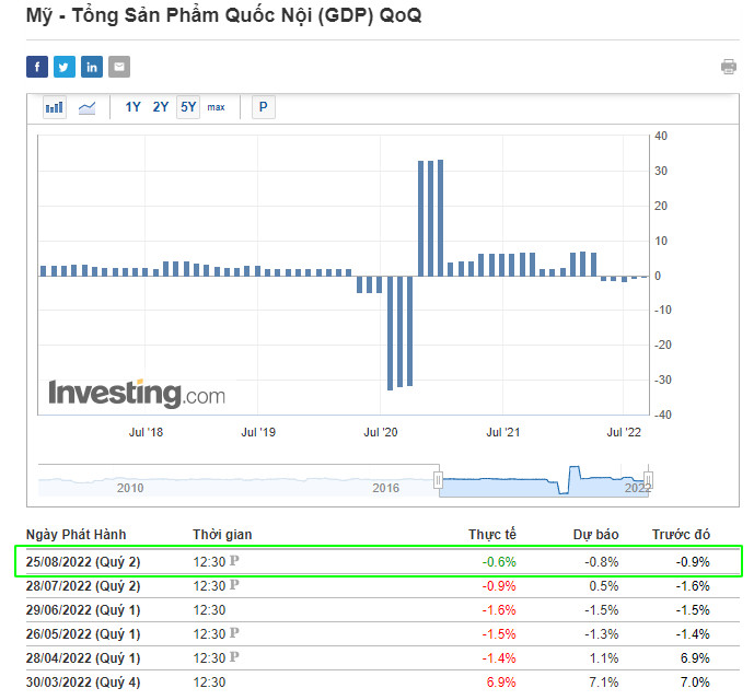 ➢ GDP Hoa Kỳ Tháng 8 đã công bố số liệu sửa đổi cho tổng sản phẩm quốc nội quý II ở mức -0.6% so với dự báo là -0.8%.