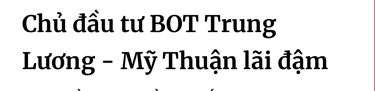 -Mảng thu phí giao thông mang về gần 1.700 tỷ đồng doanh thu trong năm vừa qua, tương đương 4,6 tỷ đồng mỗi ngày. Trong đó, dự án BOT Trung Lương - Mỹ Thuận chiếm gần một nửa. Gần đây, hai trạm thu phí Cà Ná trên Quốc lộ 1 (Ninh Thuận) và cầu Cổ Chiên (Trà Vinh) được chấp thuận tăng giá vé thêm 18%.