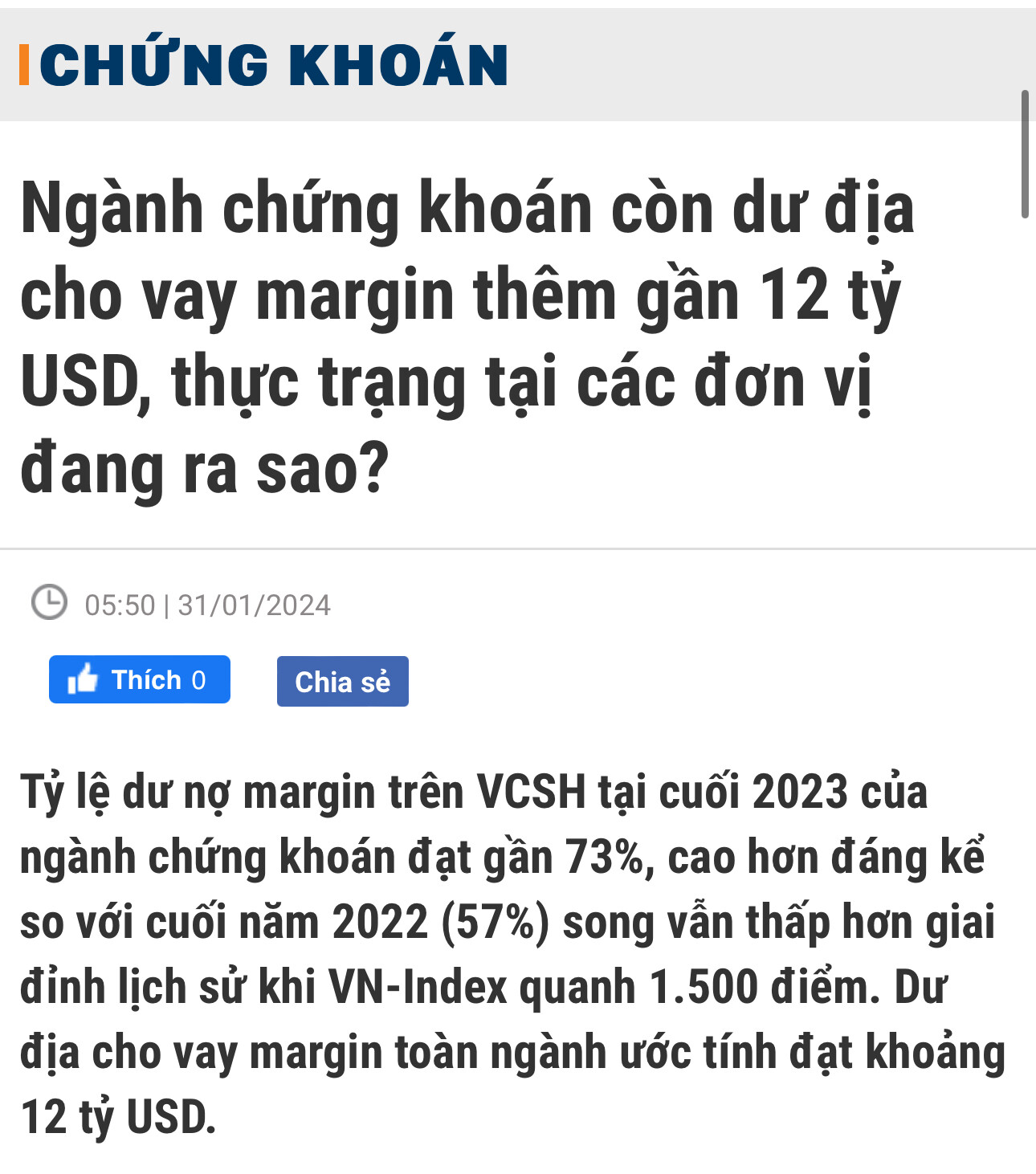 Tỉ lệ dư nợ mg của cty ck trên vốn chủ sở hữu cuối 2023 tăng khá cao đạt gần 73%, dư địa cho vay mg vẫn còn khoảng 12k tỉ, trong khi đó phí giao dịch môi giới của cty ck trong quý 4 có xu hướng giảm, điều này cho thấy việc nđt mua cp bằng mg tăng lên và có xu hướng nắm giữ nhiều hơn, ít giao dịch hơn. Như vậy liệu có phải nđt cá nhân mua hay chính các doanh nghiệp, quỹ, tổ chức mua lại các cp đã từng bị bán giải chấp của năm 2022? Và nđt cá nhân vẫn chưa vào cuộc mạnh mẽ?