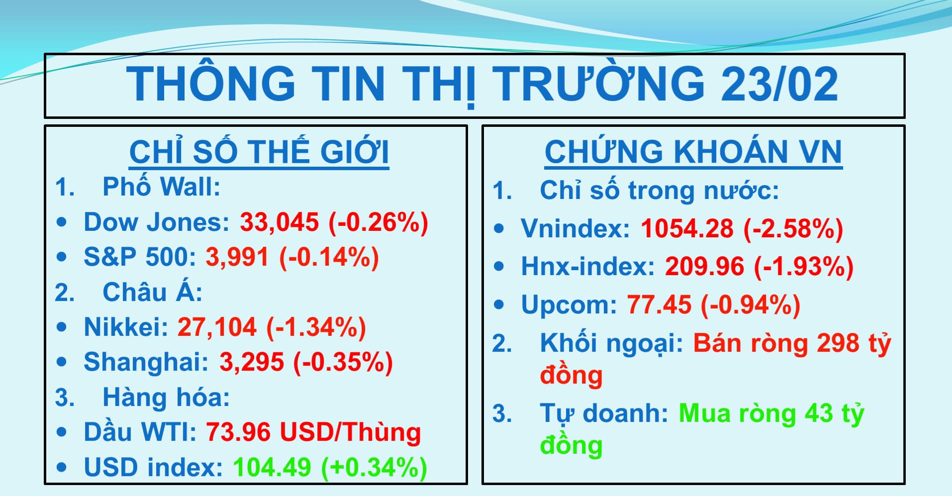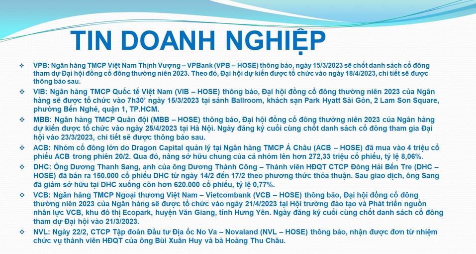 Chứng khoán hàng ngày: Thông tin đáng chú ý trước giờ mở cửa ngày 23/02/2023