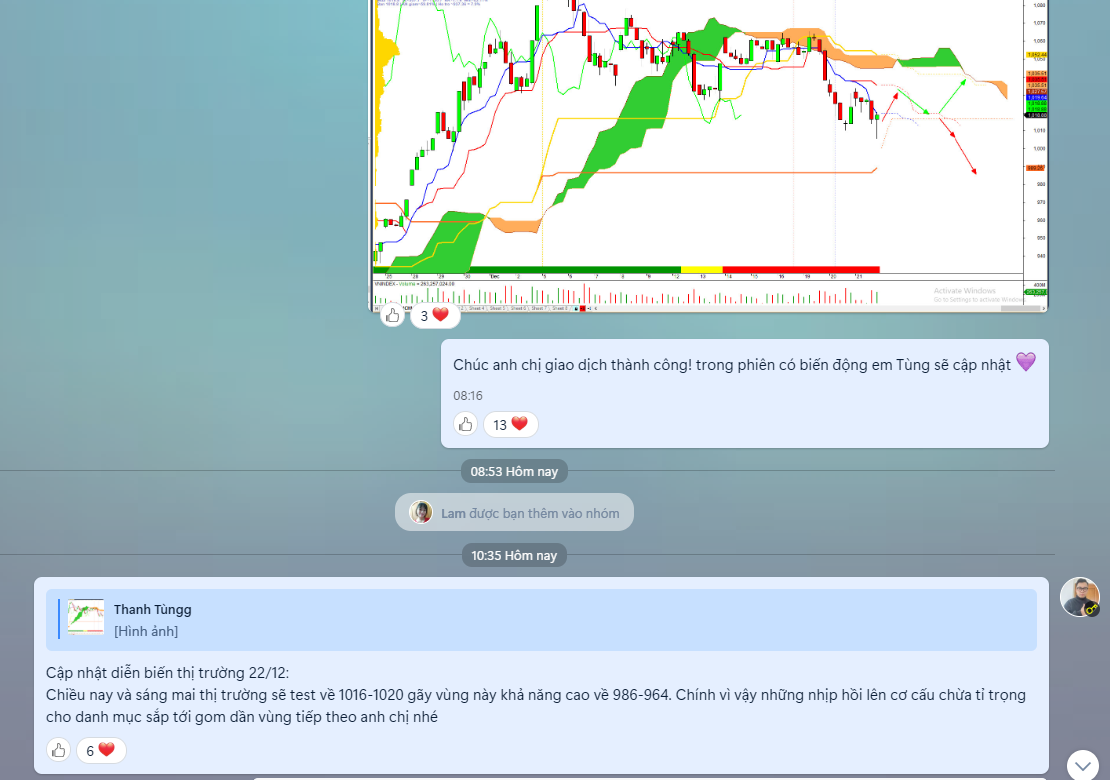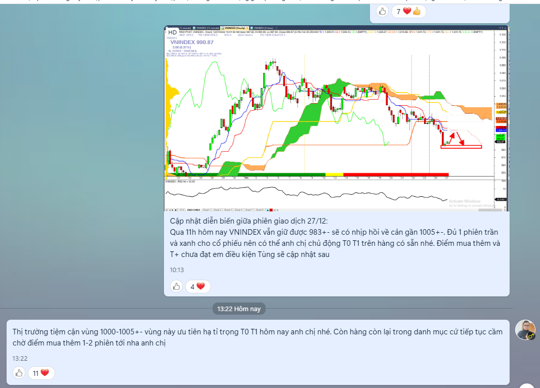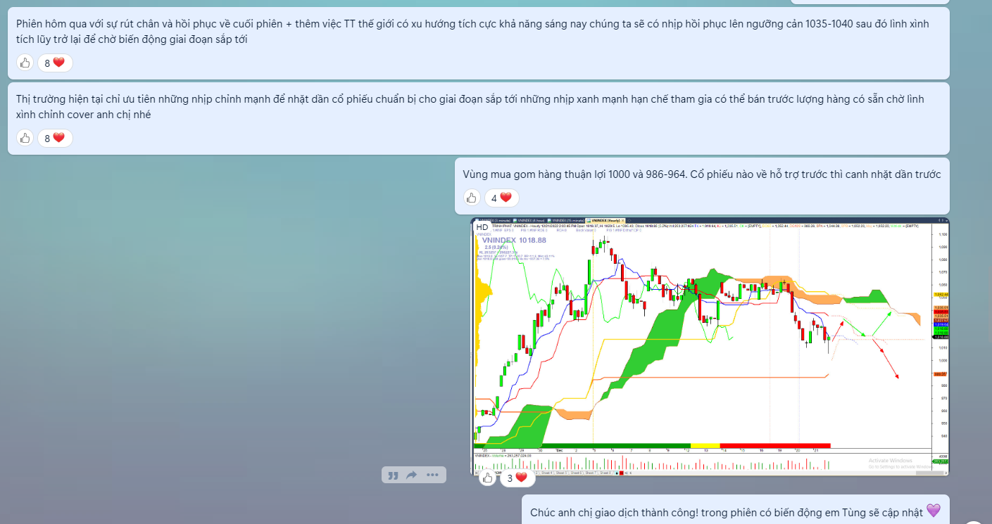 Anh chị giao lưu em Tùng hỗ trợ giữa phiên giao dịch. Chúc anh chị buổi trưa ngon miệng