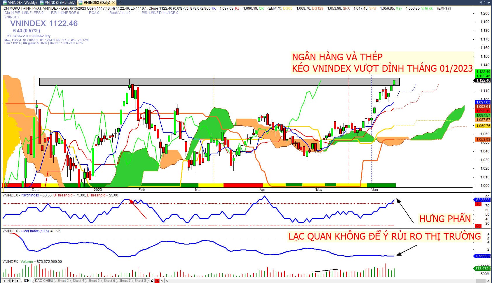 - Nhận định thị trường chứng khoán chỉ số VNINDEX 14/06/2023 :