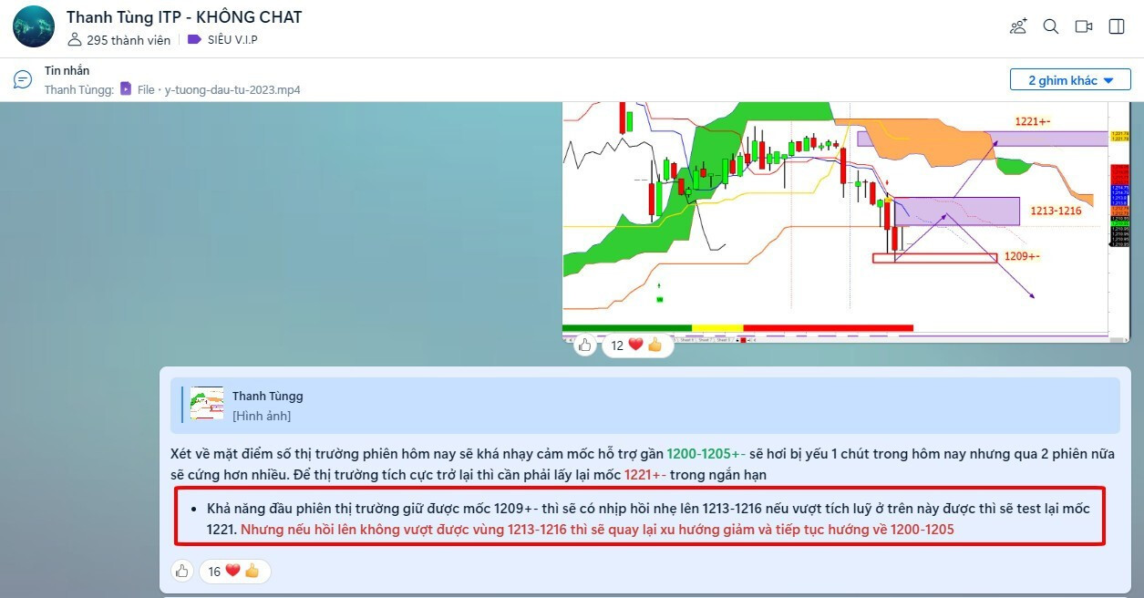 - Khả năng đầu phiên thị trường giữ được mốc 1209± thì sẽ có nhịp hồi nhẹ lên 1213-1216 nếu vượt tích luỹ ở trên này được thì sẽ test lại mốc 1221. Nhưng nếu hồi lên không vượt được vùng 1213-1216 thì sẽ quay lại xu hướng giảm và tiếp tục hướng về 1200-1205