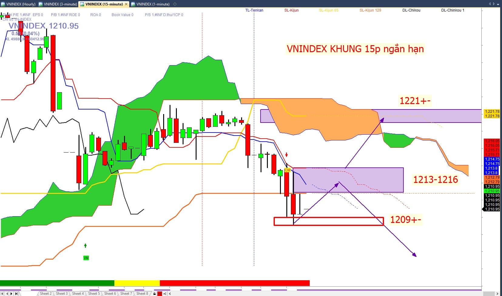 - Ngược lại nếu thị trường tích luỹ ổn trong 2 phiên thì sẽ tương đối an toàn vượt được 1223± tiệm cận lại vùng đỉnh cũ gần nhất