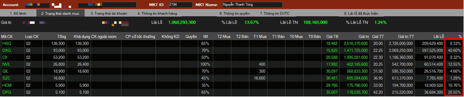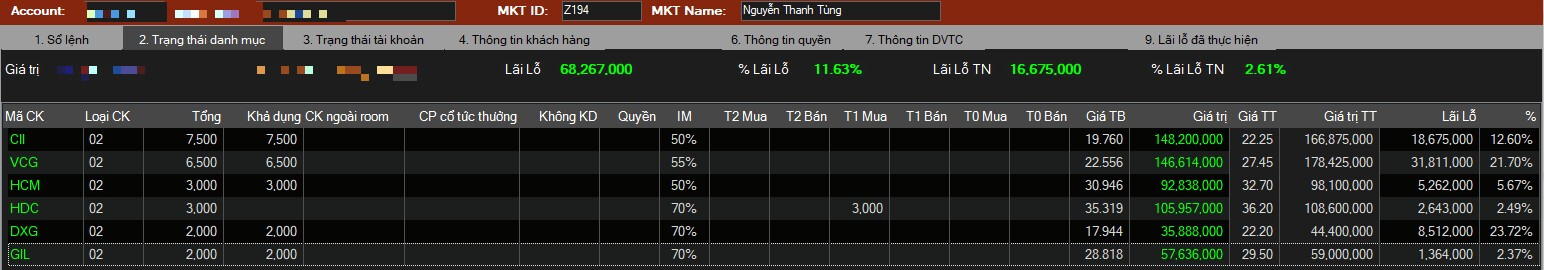 → Hành động nâng điểm chặn lãi (em sẽ cập nhật giá chặn lãi) và chốt lời đưa tỷ trọng về 50-70% tiền, bắt buộc phải hạ tất cả phần MARGIN chuẩn bị tiền cho chu kỳ mới danh mục thiết kế đã có sẵn