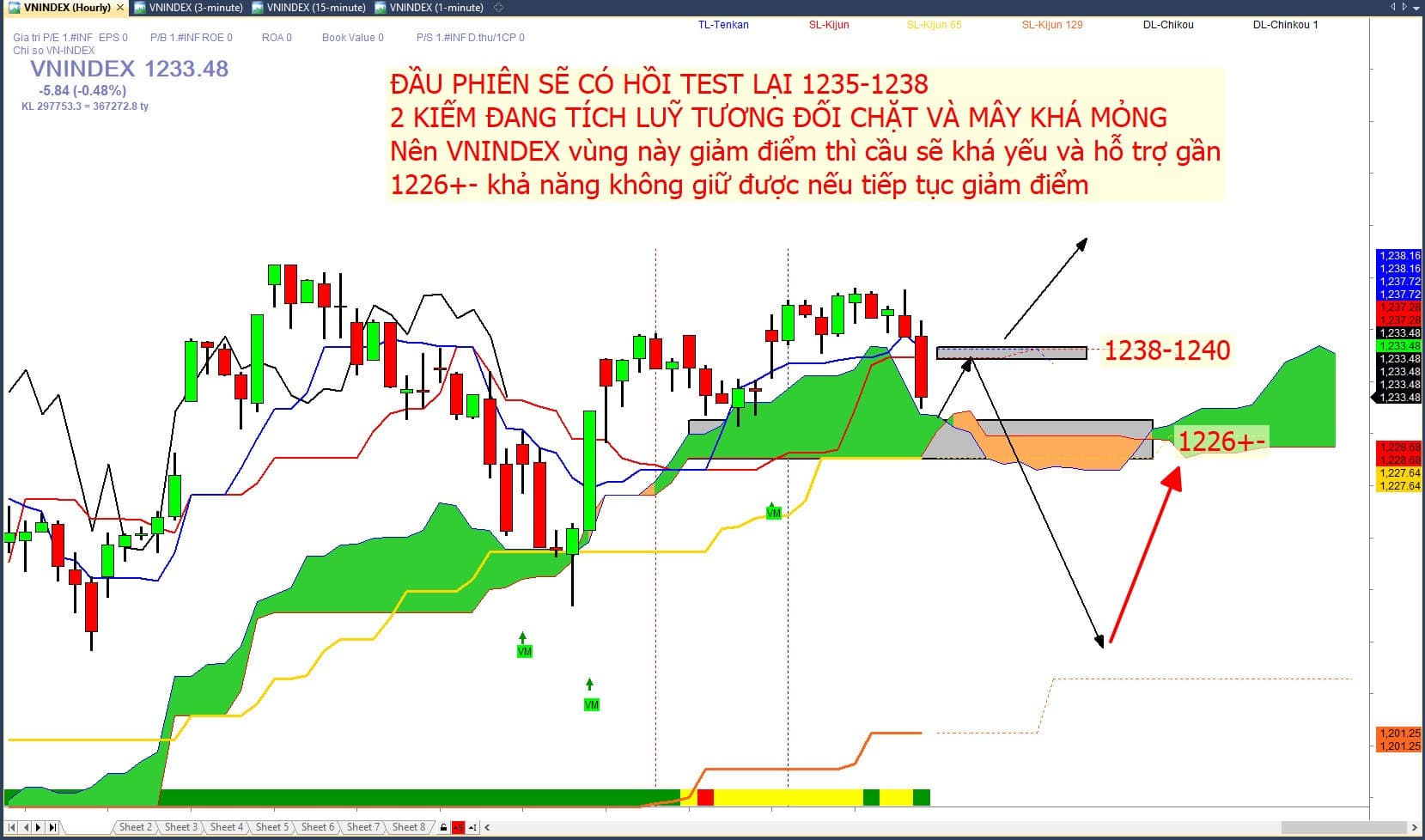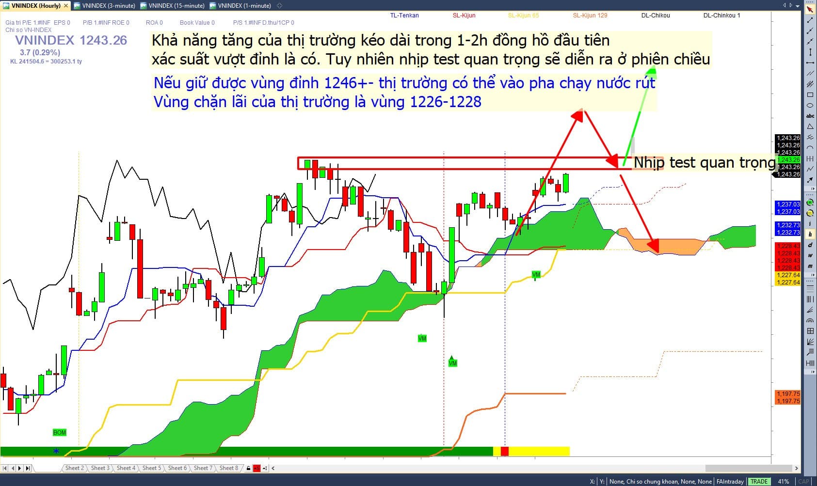 Vận động chung của thị trường trong phiên sáng sẽ test lại 1235-1238 1 nhịp khả năng sau đó đi ngang chờ biến động phiên chiều