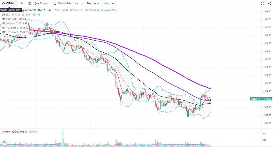 Chỉ số phái sinh đang gặp cây nến cung được tạo ra bởi cây nến đỏ bao trùm cây nến xanh và phá vỡ hỗ trợ ngắn hạn, có thể sẽ đảo chiều tại 1541. Điểm dừng chân có thể về 1530