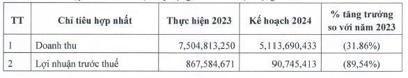 Năm 2024, Công ty xây dựng kế hoạch tập trung vào việc xin ra khỏi diện kiểm soát, khôi phục các nghiệp vụ và kết nối 2 sở. Theo đó, Công ty lên kế hoạch thận trọng gồm doanh thu 5.1 tỷ đồng và lãi trước thuế gần 91 triệu đồng, lần lượt giảm 32% và 90% so với năm trước.