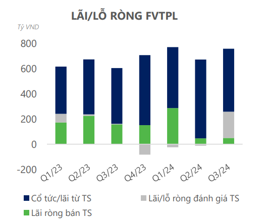 Một trong những điểm nhấn quan trọng là khoản đánh giá lại cổ phiếu và chứng khoán niêm yết tăng mạnh lên 209 tỷ đồng, sau ba quý liên tiếp ghi nhận lỗ. Những khoản đầu tư chiến lược vào các cổ phiếu như VPB, HPG, TCB và VHM đã đem lại giá trị gia tăng rõ rệt, không chỉ giúp bù đắp sự suy giảm từ lãi bán tài sản tài chính mà còn tạo ra một bước đệm vững chắc cho các quý tiếp theo.