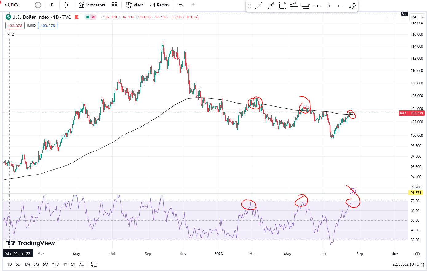 DXY: kỹ thuật thì đang nằm dưới MA200 chart Daily. Ở vị trí này nếu giảm sẽ hình thành mô hình 3 đỉnh hợp lưu với đường MA200 , đây được xem là tín hiệu dài hạn cho thấy sức mạnh usd sẽ suy yếu trong thời gian tới.