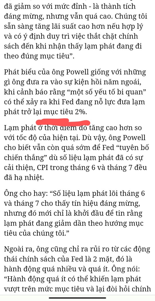 Cpi mục tiêu đã gần lắm rồi. Tin như này không phải là tin tiêu cực đâu. Vì cơ bản năm nào họp jackson hole thì fed cũng nói i z mà, " lạm phát là ưu tiên số 1, bla blo…" ![]()