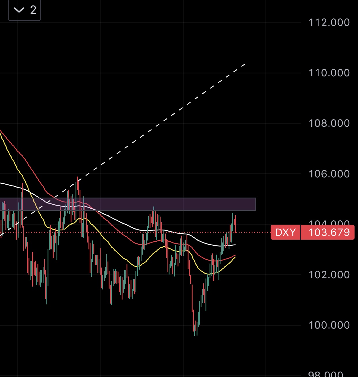Dxy nhấn lại gãy ema là đẹp. Vàng + Ck + BTc bay tới tết luôn.
