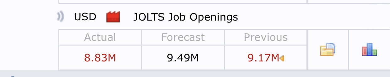 Dữ liệu việc làm công bố tệ hơn nhiều so vs số liệu forecast ![]()