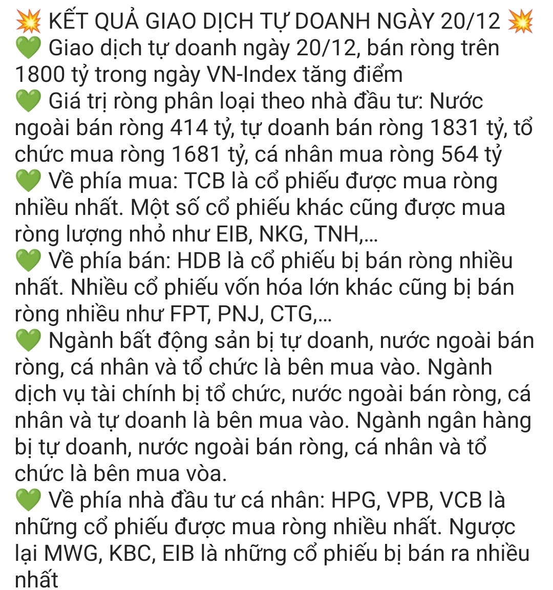 Cách đây hai phiên tự doanh mua ròng gần 1.8k tỷ và hôm nay họ bán ròng gần bằng số đó, trong đó có hơn 1.5k tỷ là bán thỏa thuận.