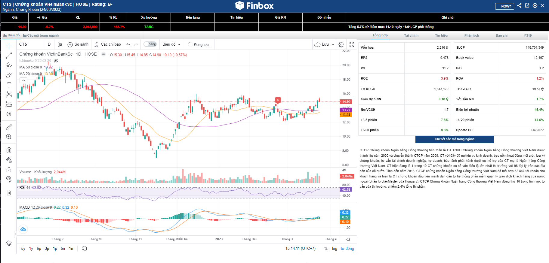 Ngoài VCI FTS thì hôm nay nhóm chứng xuất hiện thêm MBS CTS khá khoẻ
