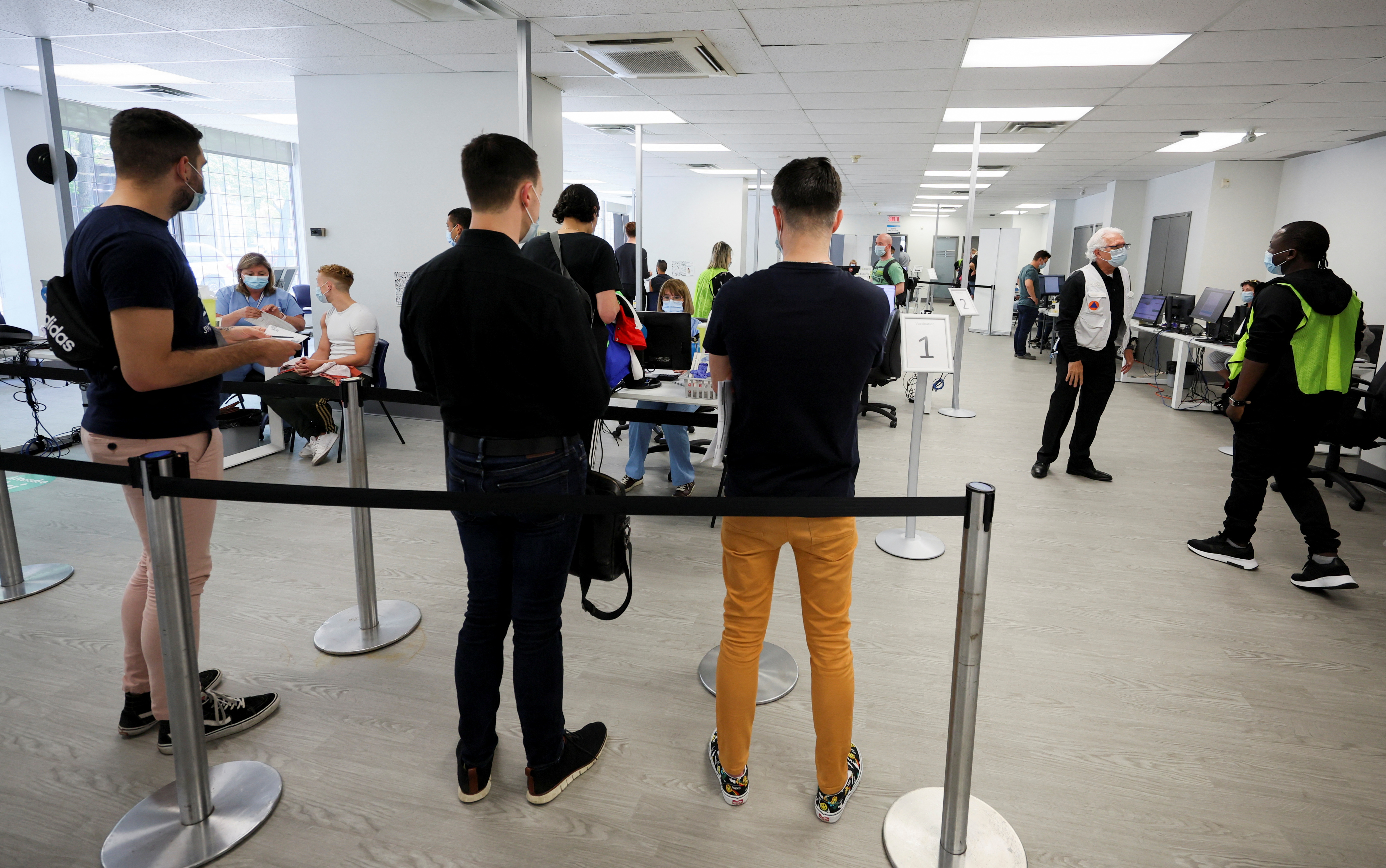 Người dân xếp hàng tiêm ngừa bệnh đậu mùa khỉ tại Canada ngày 6-6 - Ảnh: REUTERS