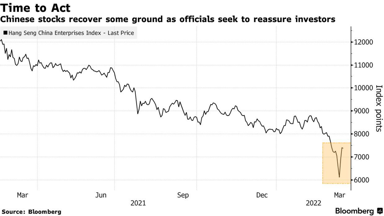 Hang Seng China Enterprises hồi phục sau thông báo trấn an nhà đầu tư của Trung Quốc.