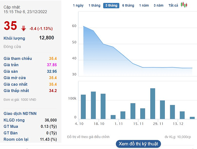 135,8 triệu cổ phiếu ACG của Gỗ An Cường chính thức giao dịch trên HOSE lần đầu tiên vào ngày 10/10/2022 với giá tham chiếu 67.300 đồng/cp. Kết phiên giao dịch ngày 22/12, thị giá ACG còn 35.000 đồng, giảm 48% so với mức giá khi chào sản. Vốn hóa công ty chỉ còn hơn 4.700 tỷ đồng.