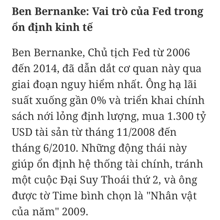 Trong cuộc Đại Suy Thoái 2007-2009, chủ tịch FED đã lèo lái con tàu đưa Mỹ vượt qua khủng hoảng