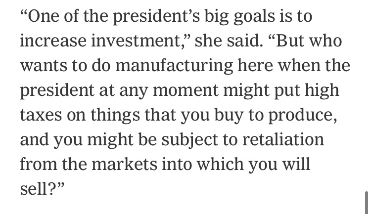 Vam dịch: lên làm TT, mục tiêu lớn nhất lão ấy (Trump) đáng ra phải tăng hút vốn đầu tư vào Mỹ. Ai còn dám bỏ tiền ra đầu tư bên đó nếu lão tổng thống ấy suốt ngày đòi áp thuế lên hàng hoá ng ta mua để sx và bán ở nước lão?