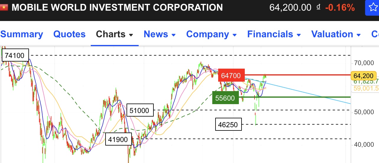 Hiện MWG đã vượt đỉnh 6 tháng ở giá 65 nên đang điều chỉnh chút lấy đà phi lên vùng 7x. Mục tiêu: k có mục tiêu, nhìn FRT phi 1 hơi từ 6x lên 200 nhịp trước thì MWG hẳn là có thể sớm thôi.
