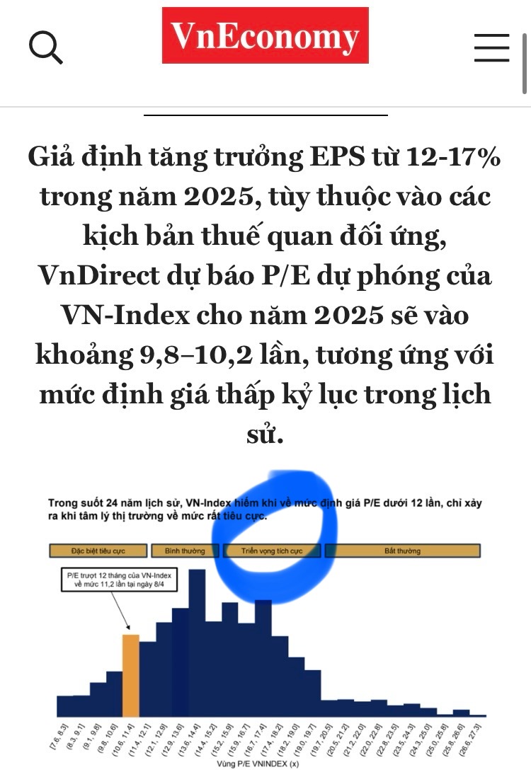 Trong nước thì nội tại đang tốt, các lãnh đạo khắp nơi tới VN mở rộng hợp tác liên tục, mục tiêu tăng trưởng còn đó… ảnh hưởng thuế quan với VN có vẻ mỗi ngày bớt lo đi 1 chút ![]()