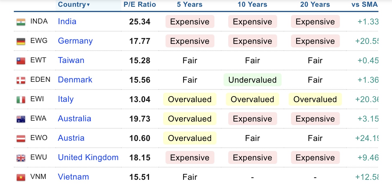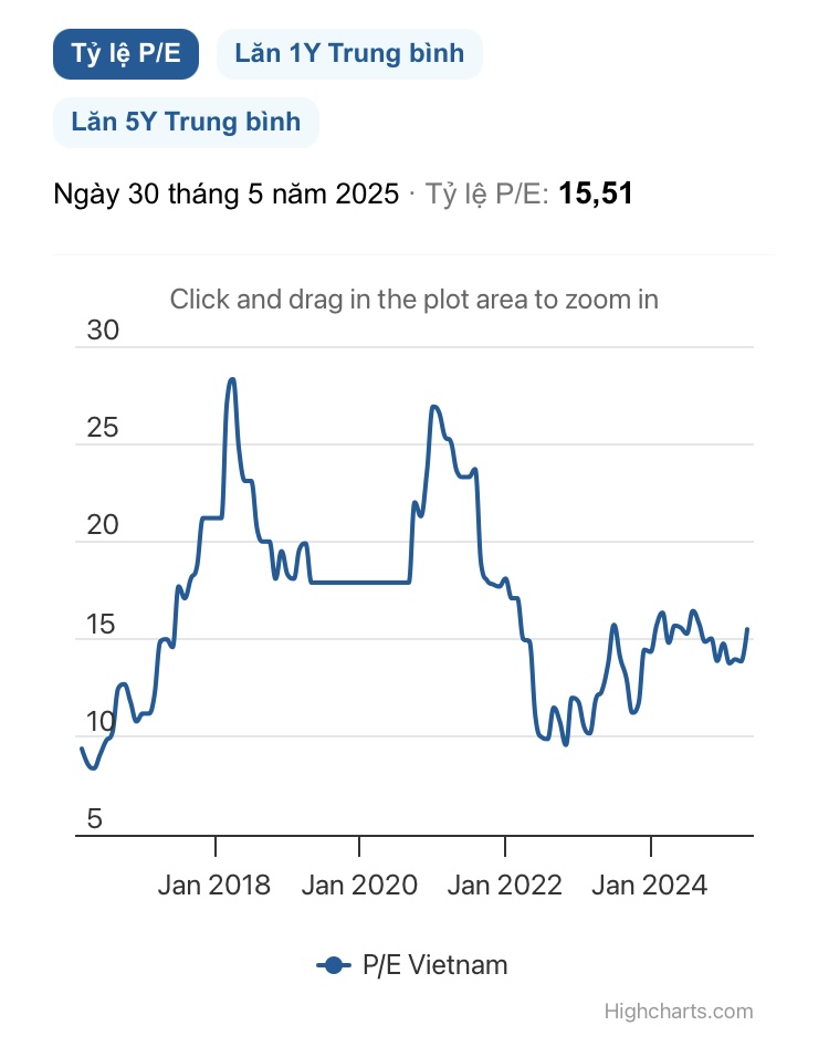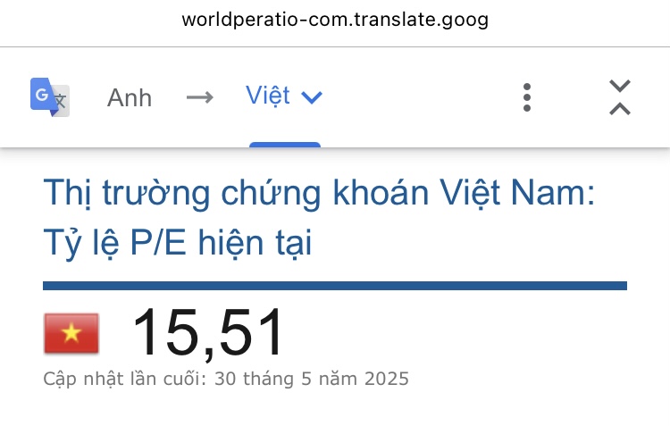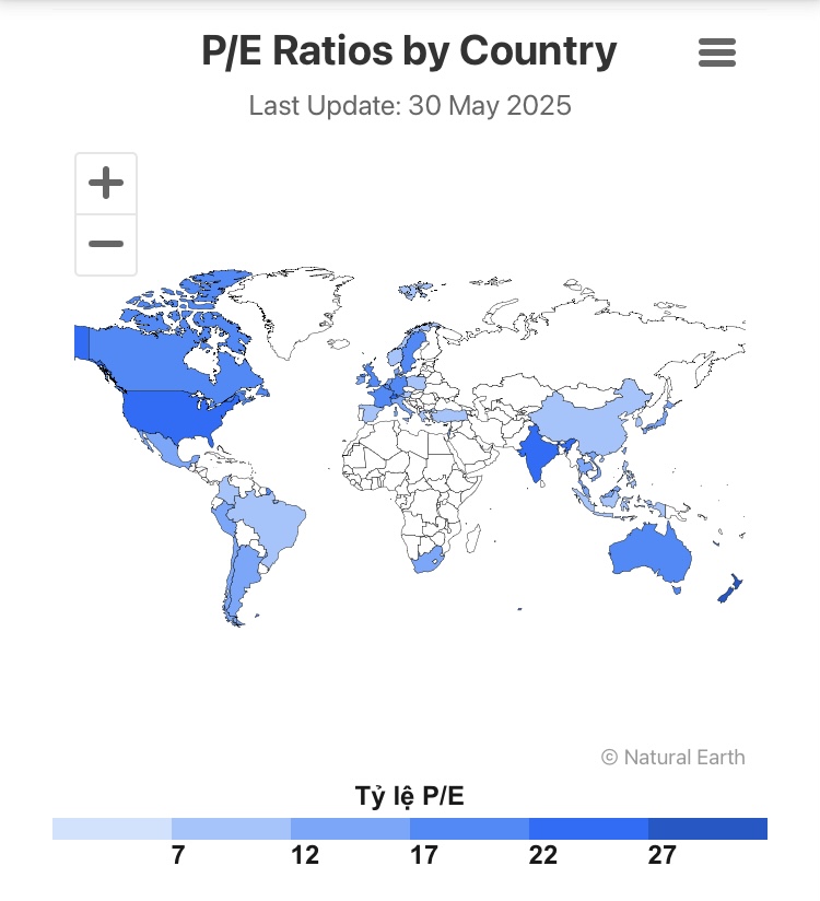 Trang web tính P/E toàn cầu có khác thông số so với cách tính của các trang VN, tuy nhiên mình nhìn tổng thể để biết VN so với hàng xóm đang ở đâu và hiện tại so 5 năm qua là đắt hay rẻ.