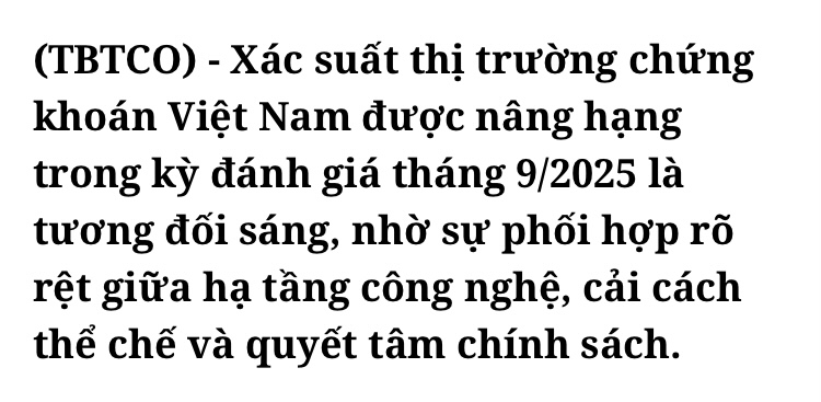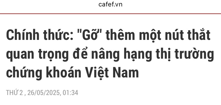 VN là Tt cận biên đang trong watchlist lên TT mới nổi, kỳ vọng đợt nâng hạng tháng 9 năm nay. Muốn lên thì volume và các tiêu chí tích cực chúng ta phải đạt.