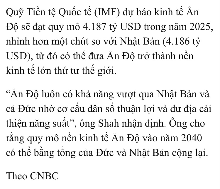 Ấn độ: tăng trưởng vượt bật từ đợt covid. nay lấy tiếp bàn đạp cuộc chiến thuế quan & thương mại toàn cầu, dự báo vươn lên số 4 TG trong năm 2025