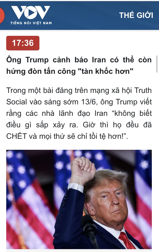 Sau mấy đợt bị cụ Trump vả cho lên bờ xuống ruộng thì tin Israel hay Iran hay bất cứ gì mà k ảnh hưởng trực tiếp đến VN cũng k làm nđt trong nước hoảng loạn nữa.