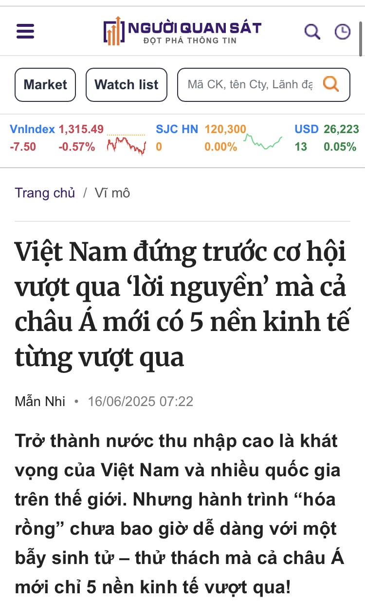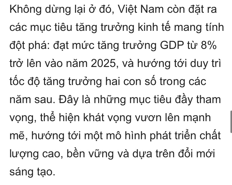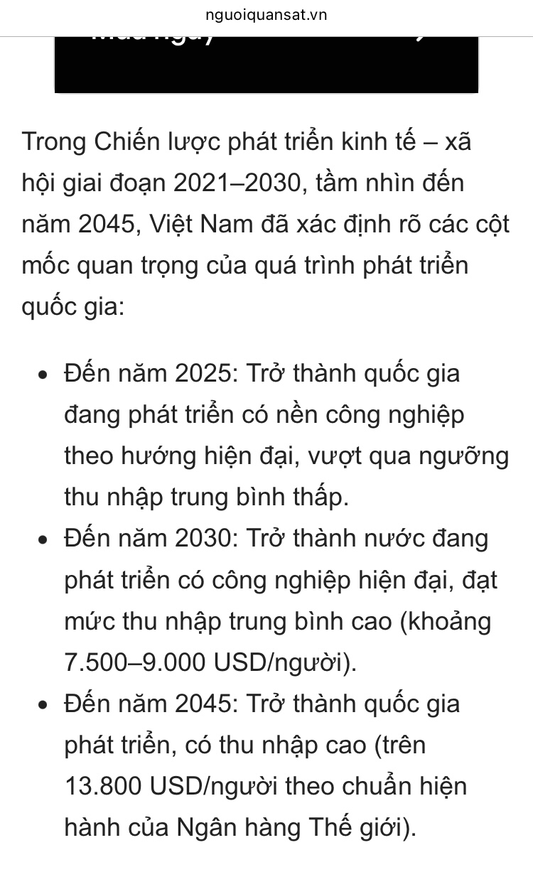 VN rõ ràng đang tham vọng trở thành nước thứ 6 ở châu Á. Chúng ta cứ tin tưởng vậy đi, Vam là rất lạc quan với tầm nhìn chiến lược của CP VN từ 2025 đến 2045