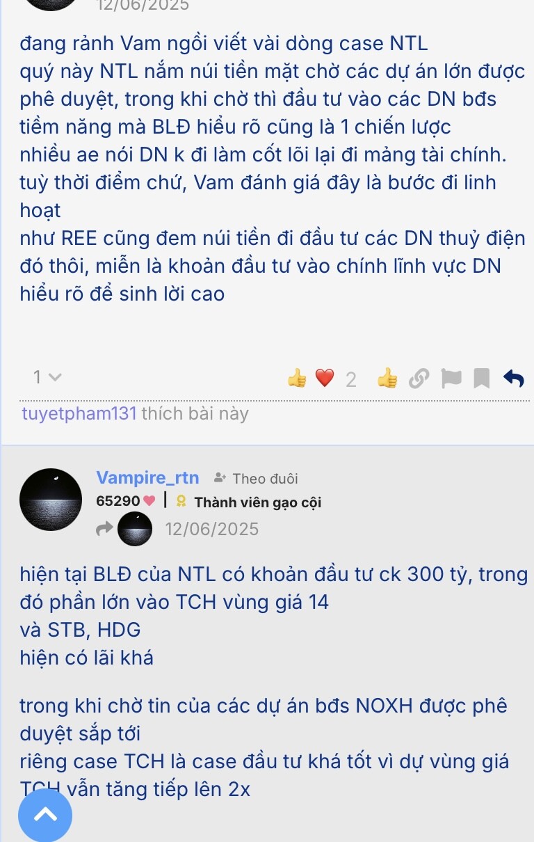 Nếu có sóng bđs thì NTL thuộc nhóm trên sẽ bứt mạnh, dòng tiền đầu cơ gần đây chảy vào mạnh NVL CEO TCH DIG NTL…