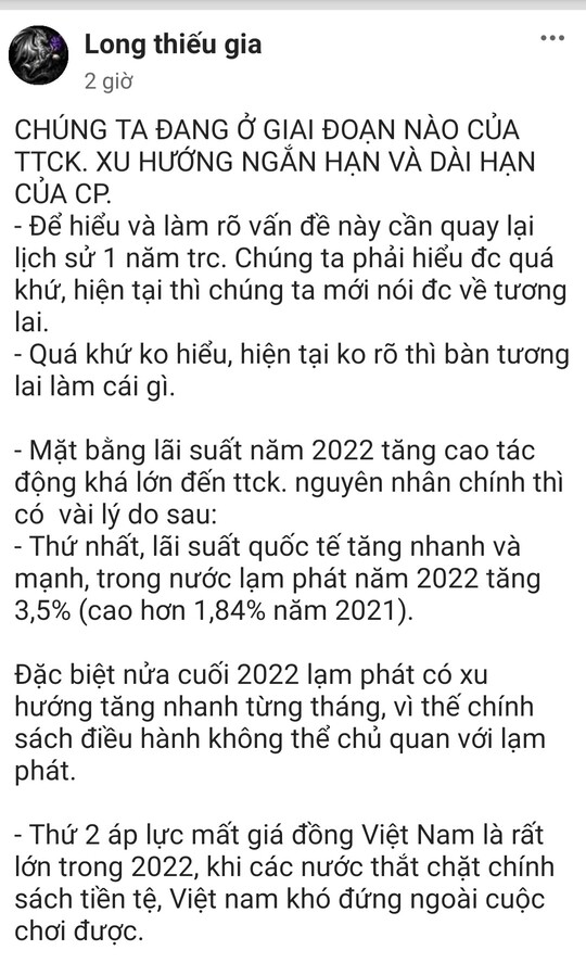 Về tình hình thế giới sau khủng hoảng 2008 ttck các nước đều rơi khá sâu, đi ngang kéo dài vài năm còn hiện tại sau khi giảm ttck nhiều nước đã vượt đỉnh, gần áp sát, hoặc hồi phục khá nhanh sau 1 thời gian ngắn. chính sách tăng lãi suất của Fed đã có xu hướng muốn dừng để hỗ trợ nền kte. sau khi đã phần nào đạt được mục tiêu kiềm chế lạm phát. đặc biệt là giữ giá đồng dola cái này là quan trọng nhất vì nó chính là sức mạnh của nước mỹ. nhưng đa số nđt ở việt nam lại it người để ý đến mục tiêu này mà phần lớn để ý đến lạm phát.