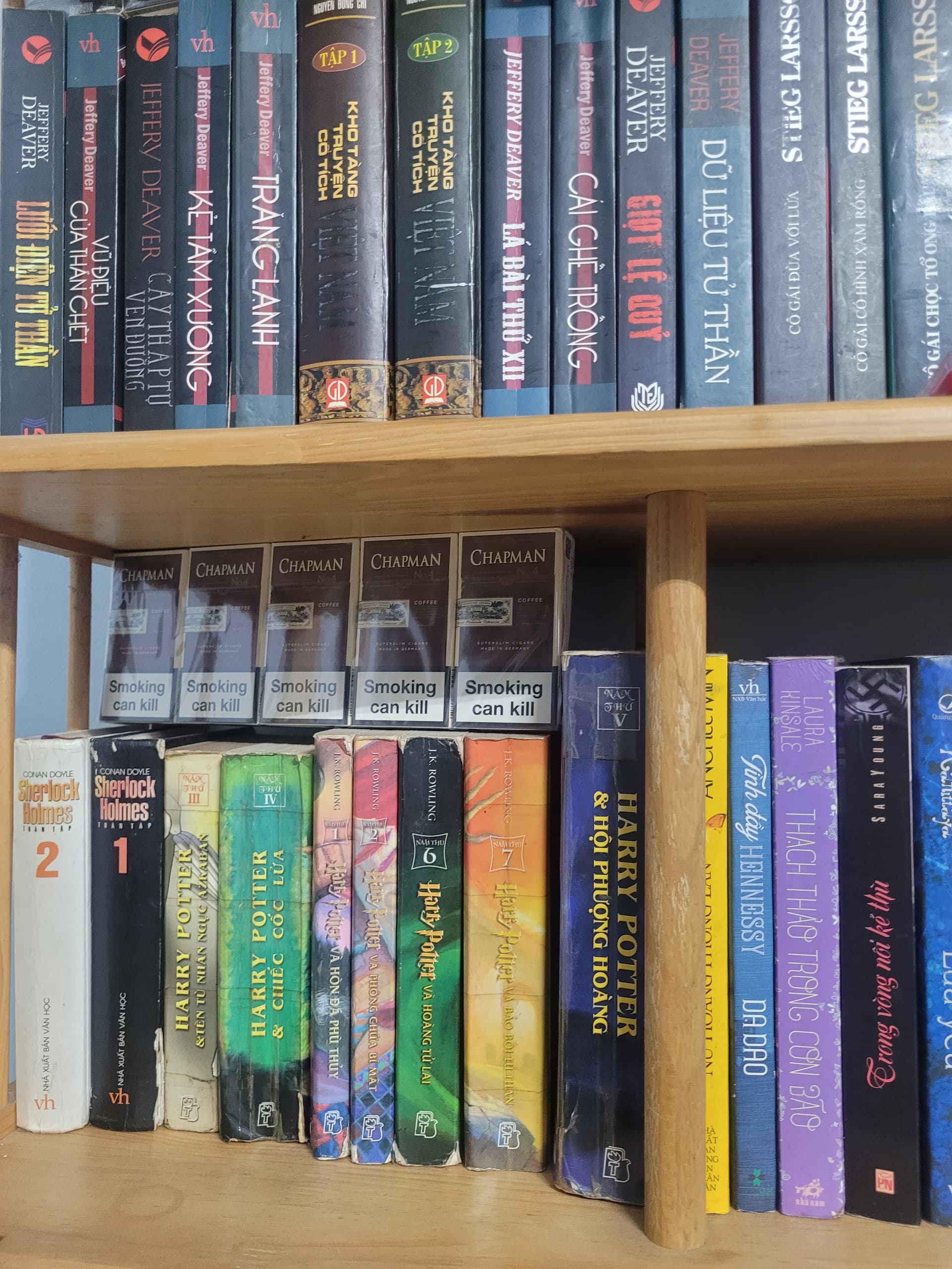 Hông có tiền mua sơn, mua paint thì lấy đỡ kệ sách che vô, ra nhà sách nào đó mua sách về che.