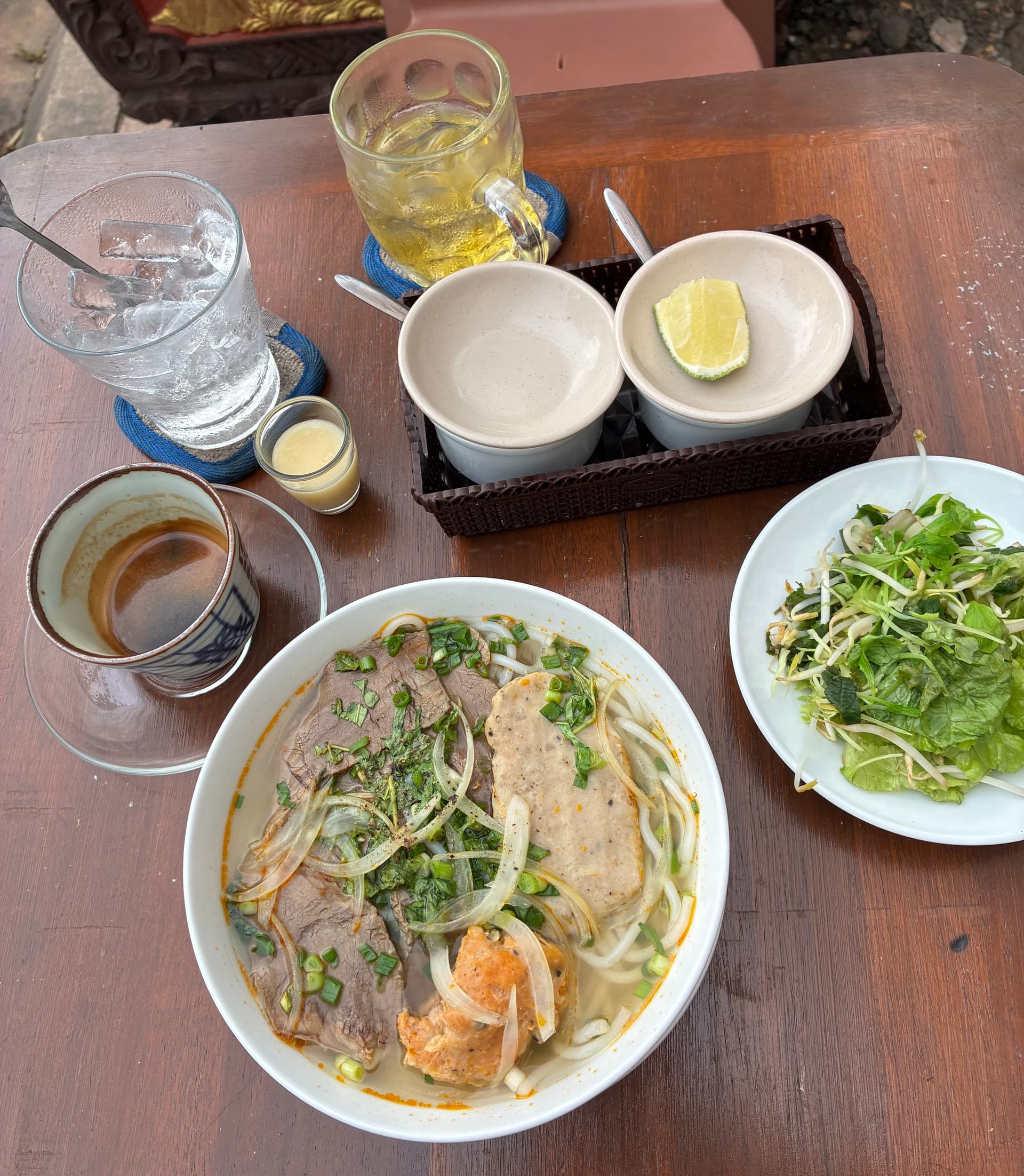 quan tâm đến bún bò và cà phê. Và ngắm voi bên kia sở thú safari.