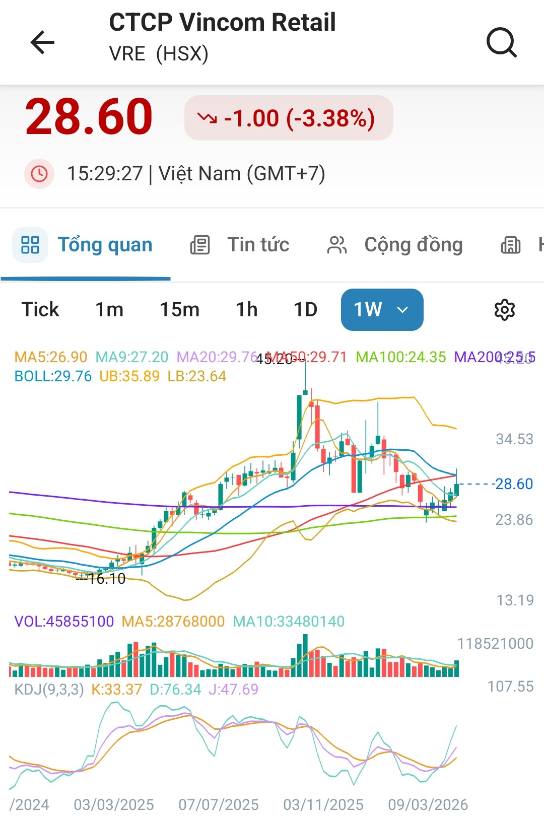 EIB là ví dụ điển hình khi kéo gần trần rồi lừa úp bô xuống, mình cũng đã bán đc EIB giá 23,45; DGW cũng bán bình quân trên 47 để mua tiếp CII giá đỏ và MSR giá 45,6 hôm qua, thứ 2 ko hiểu còn đâu hàng CII để bán giá dưới 19 khi đóng cửa qua xanh dư mua 19,5. VRE theo dõi kỹ đáy mới đã tạo cứng ở 28.5