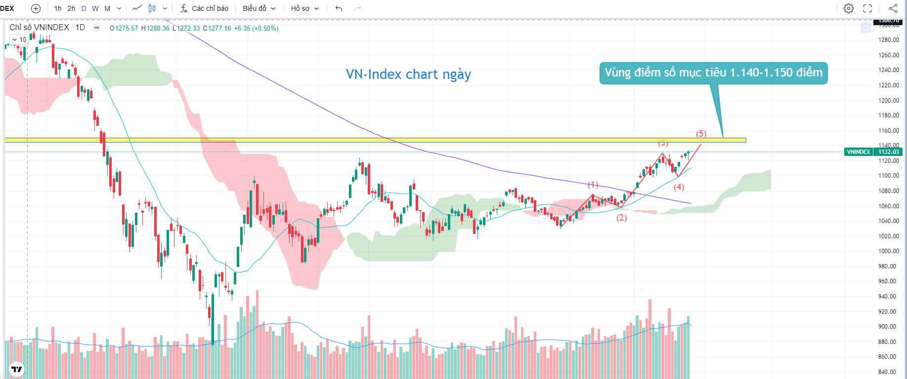 Do đó, nếu bức phá thành công khỏi vùng đỉnh hiện tại, chỉ số sẽ có cơ hội hướng đến vùng điểm số mục tiêu quanh 1.140-1.150 điểm, đồng thời thu hút dòng tiền mua mới tham gia.