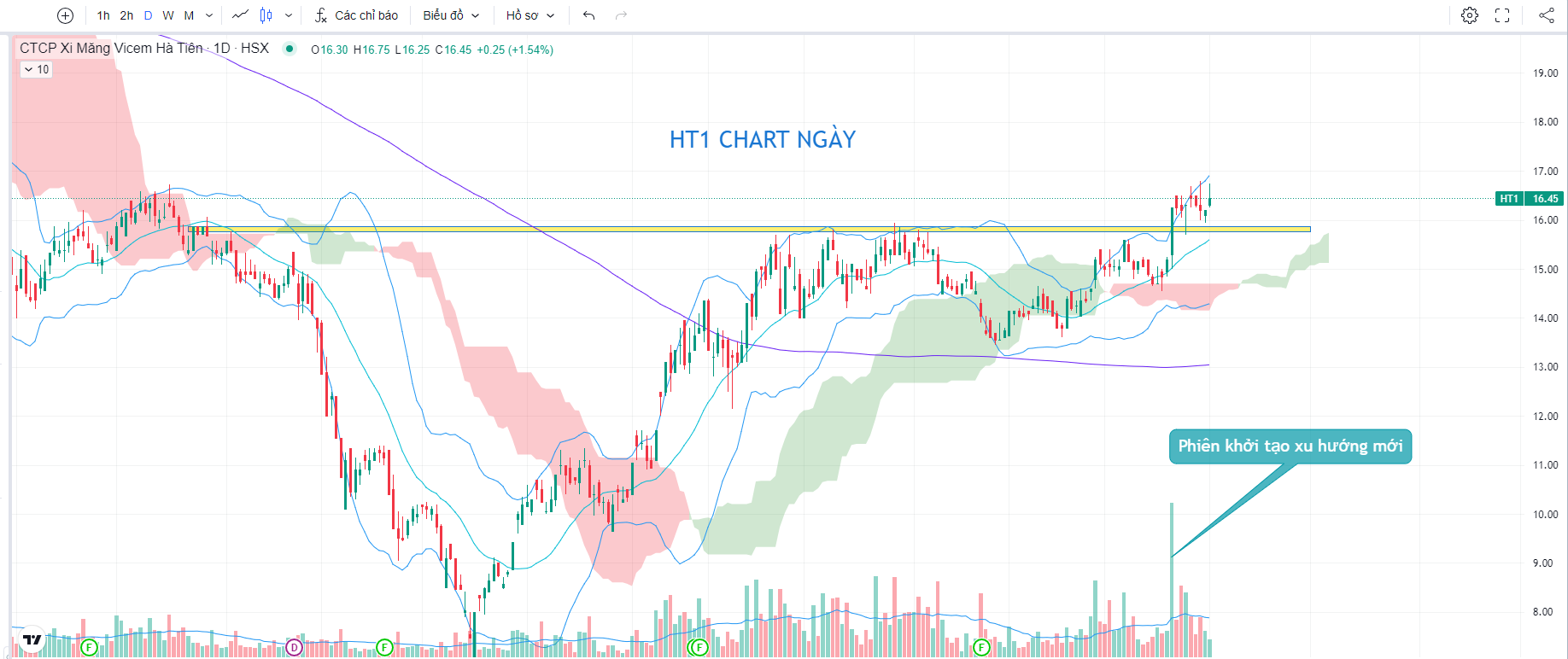 Lần này đỉnh của thị trường không nhất thiết trùng với đỉnh của cổ phiếu và HT1 hoàn toàn đủ điều kiện vượt lên những vùng giá cao hơn trong các phiên tiếp theo tương tự KSB HHV.