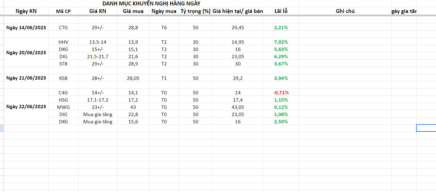TÓM TẮT TÍN HIỆU PHIÊN SÁNG NGÀY 22.06.2023