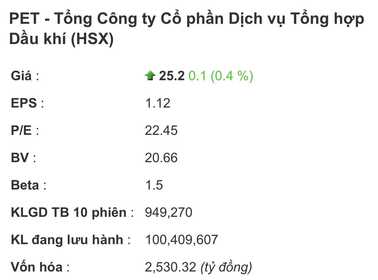 Vốn hoá PET lúc này = 2.006 tỷ.