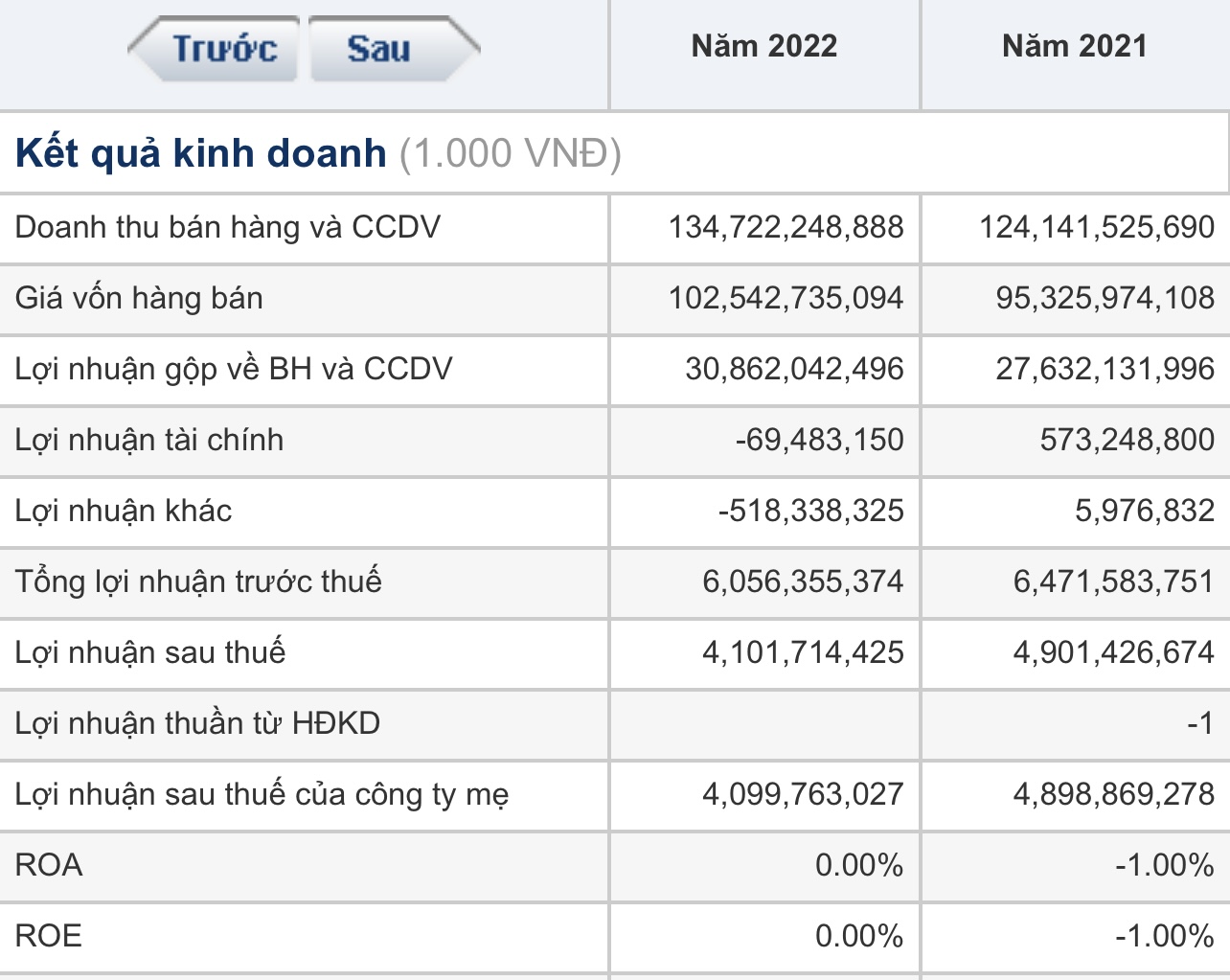 Doanh thu : 134.722 tỷ