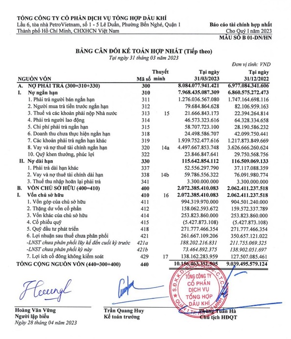 Phải thu : 2.087 tỷ (giảm 53 tỷ so với Q4.2022)