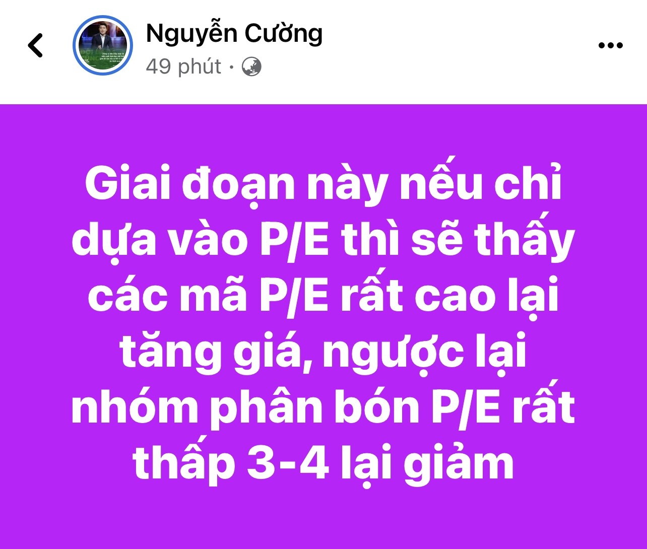 Ngược lại giá cổ phiếu bây giờ 10 có PE bằng 7, 2025 giá 30 có PE 21 lần. Thì rồi chúng cũng sẽ xuống lại 7. Tức là xuống lại 10. Cho dù đến 2025 bạn kiếm được tiền nhưng bạn sẽ mất ngay sau đó thôi.