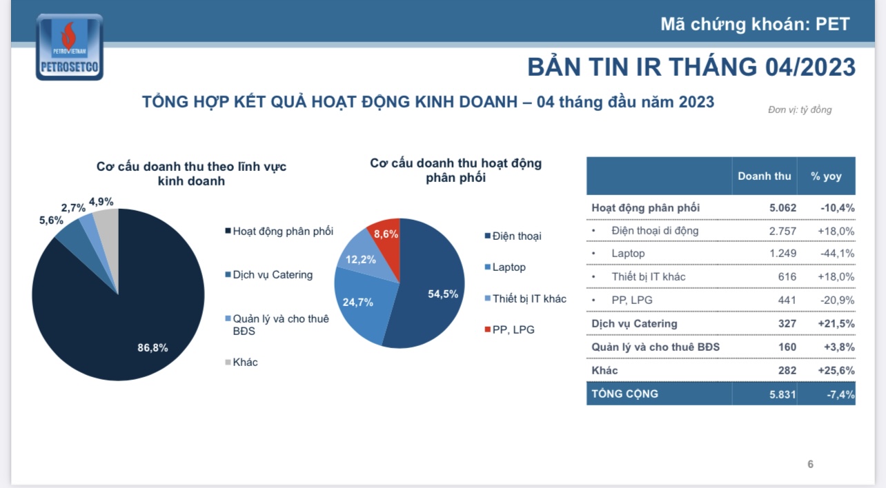 Doanh thu về mặt hàng điện tử của PET chiếm 85% tổng doanh thu.