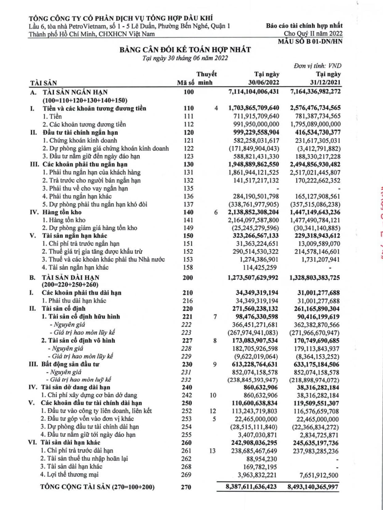 Dự phòng phải thu ngắn hạn khó đòi Q.2/2022 : (338 tỷ)