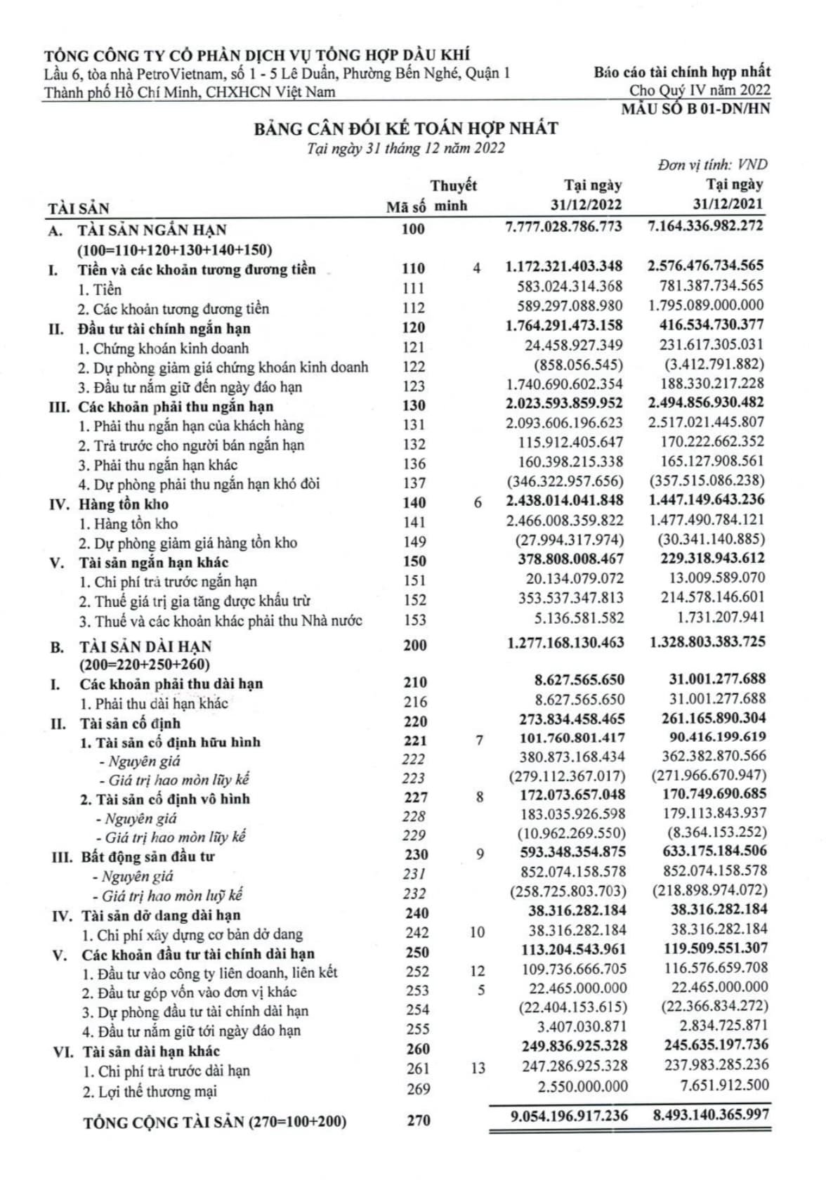 Dự phòng phải thu ngắn hạn khó đòi Q.4/2022 : (346 tỷ) - 0
