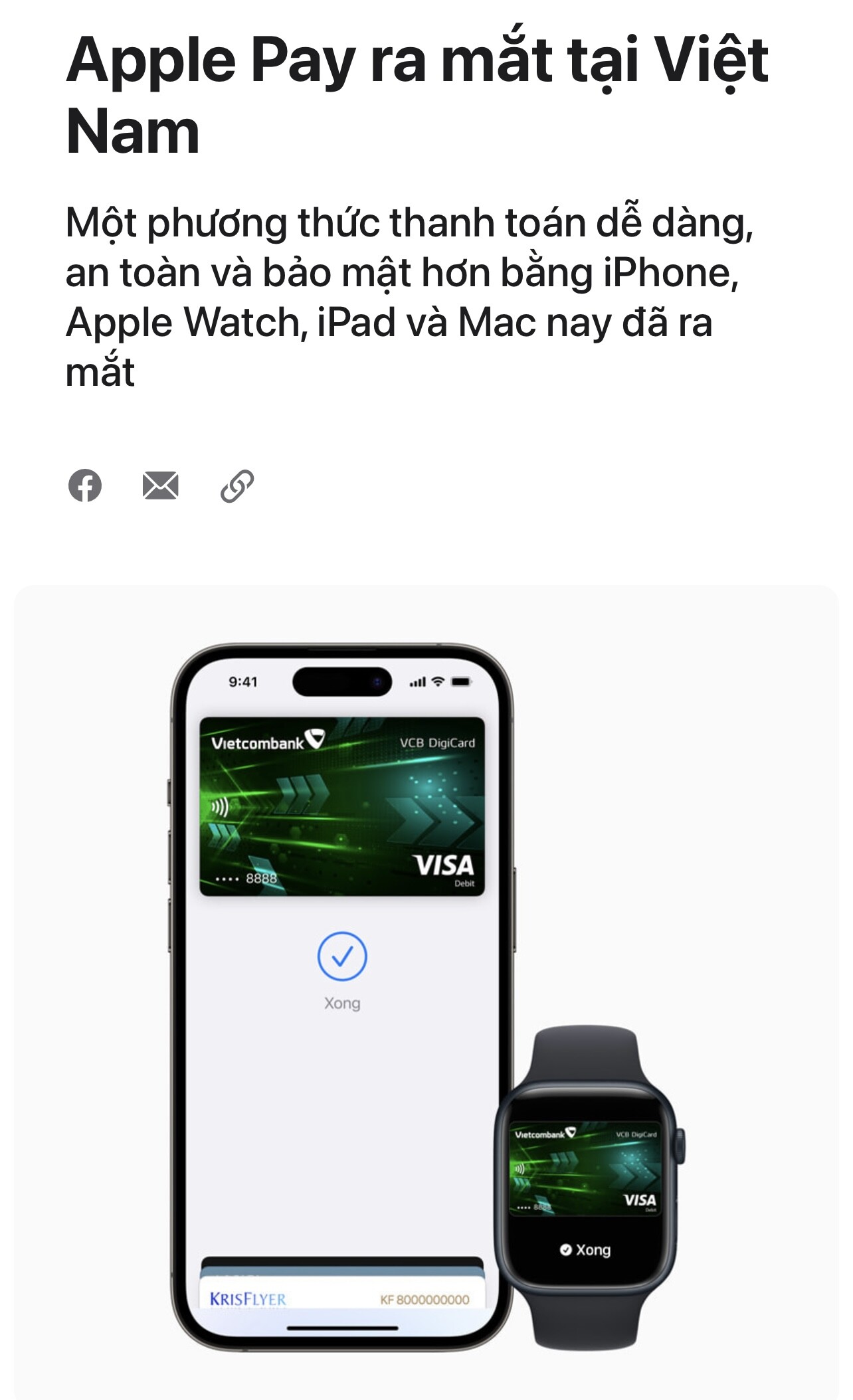 Chi tiết thông cáo báo chí: Apple Pay ra mắt tại Việt Nam - Apple (VN)