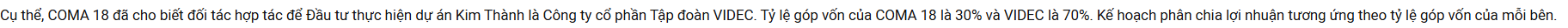 Dự án KCN Kim Thành là của Coma18 mà. Bên nào muốn đầu tư phải góp vốn vào Coma18 chứ ![]()